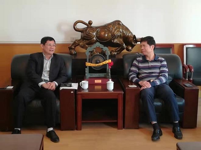 近日,集团公司党委书记、董事长黄东海在集团公司8楼会议室会见了来访的中国农业发展银行南宁分行黄锦荣行长一行,双方就未来合作进行了交流。