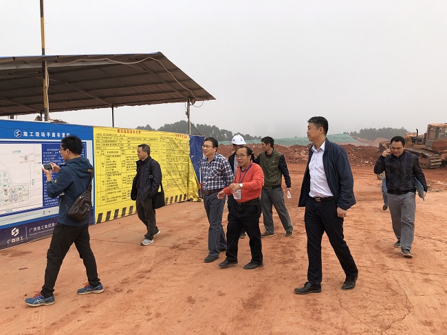 为确保2020年底南宁市黑臭水体治理明显见效,2020年1月8日,五象新区规建局副局长唐绍东及集团公司总工程师、市水环境综合治理工作指挥部工程前期及用地保障组副组长韦永平一行,前往南宁市物流园污水处理厂尾水生态湿地提质工程(一期)项目调研。