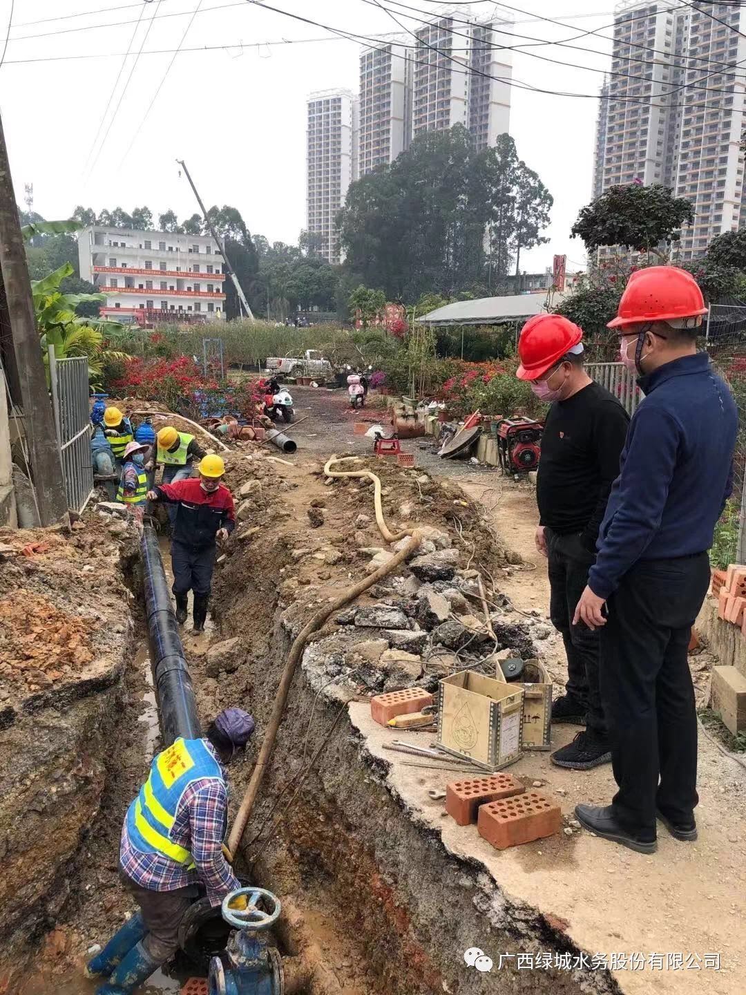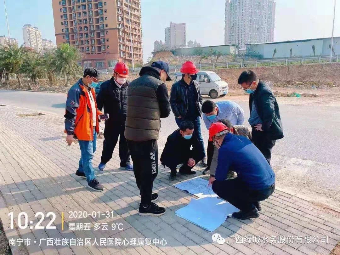 为了进一步优化外部市政供水管网,全力保障邕武医院的供水安全,绿城水务抓住配合邕武医院扩建工程项目建设的有利契机,多方协调,争取到了进场施工的条件。面对疫情的严峻形势,相关党员干部、施工人员在公司党委的部署和号召下,把建设抗疫配套设施的任务放在第一位,放弃休假、提前返工,众志成城、共克时艰,义无反顾投身项目建设一线。1月31日,由水建四处主任李小松带领30多名施工技术人员同步进场,开展剩余部分关键节点的攻坚施工。