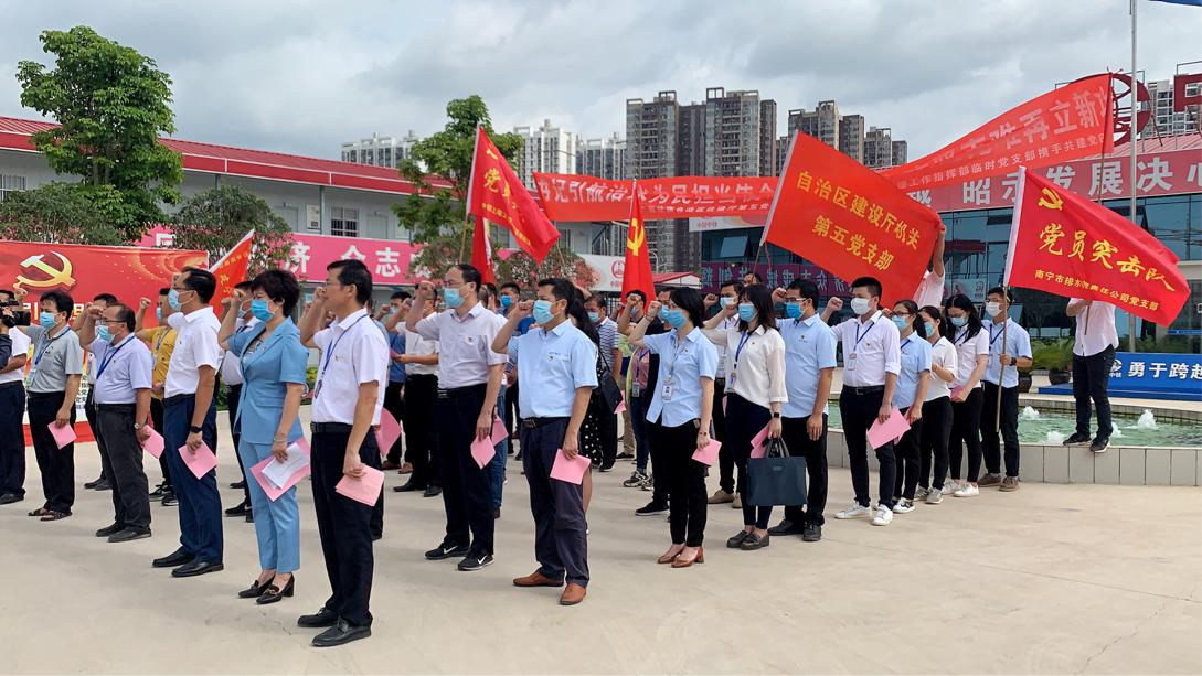 当日,参加主题党日活动的全体党员,在党旗下庄严宣誓,向社会公开承诺:坚决完成2020年底前全市建成区消除黑臭水体目标任务。在建党99周年到来之际,开展此次结对攻坚活动,深化业务交流,积极发挥基层党组织的战斗堡垒作用和党员干部先锋模范作用,共同为南宁市实现2020年底全面消除城市黑臭水体、全面提升生态居住环境贡献力量。