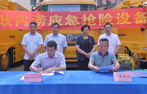南宁市市政工程管理处与市排水公司举行内涝应急抢险设备移交仪式 ()()((90( 5月15日下午,南宁市市政工程管理处与市排水公司举行了市政内涝应急抢险设备移交仪式。市市政与园林局局长蓝岚、副局长刘玄,集团公司副总经理、排水公司董事长周柏建,市市政工程管理处主任梁华强,及市排水公司等相关人员参加移交仪式。