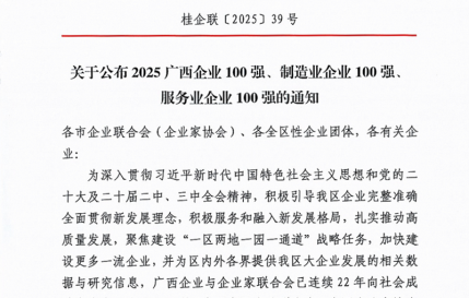 集团公司荣获“2025广西企业100强”“2025广西服务业企业100强”
