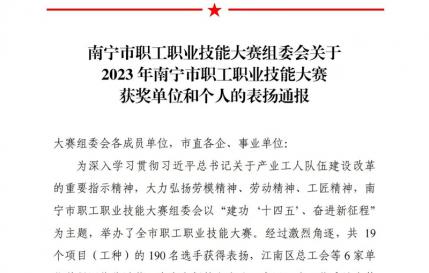 喜报!集团公司12名选手在2023年南宁市职工职业技能大赛中获表扬